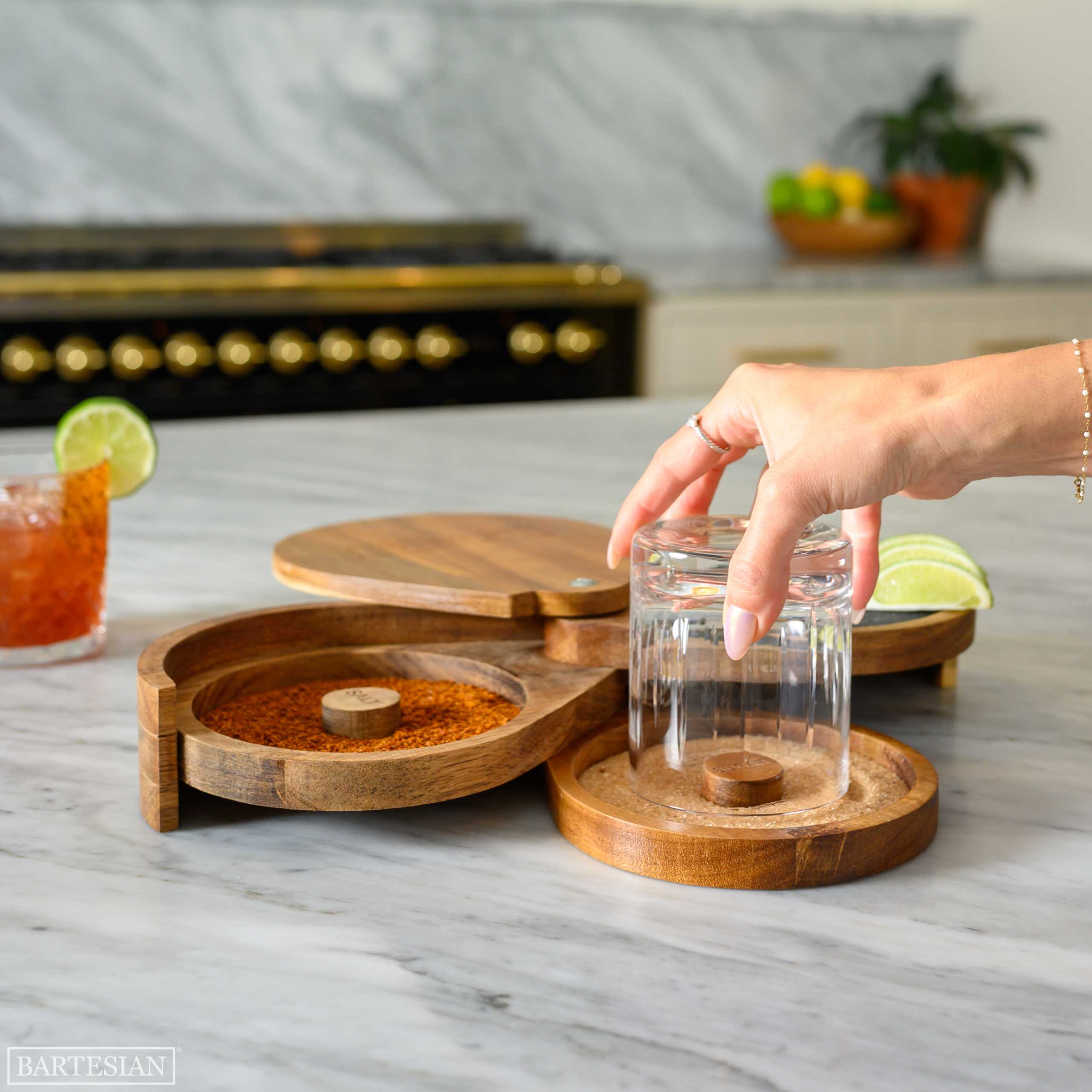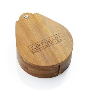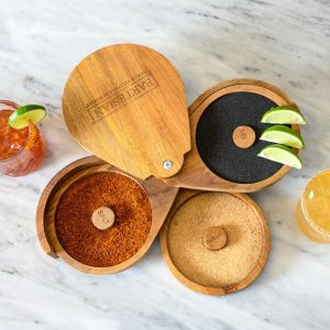 Take your cocktails to the next level with the engraved Bartesian Acacia Bar Rimmer. Crafted with premium acacia wood. this stylish rimmer is perfect for prepping glass rims with . turning your drinks into eye-catching creations. Its rich. natural wood grain brings warmth and sophistication to any home bar setup. making it a must-have accessory for cocktail enthusiasts. Each set contains 3 wooden trays of the same size and 2 sponges. Salt and sugar rimmers displayed are sold separately.