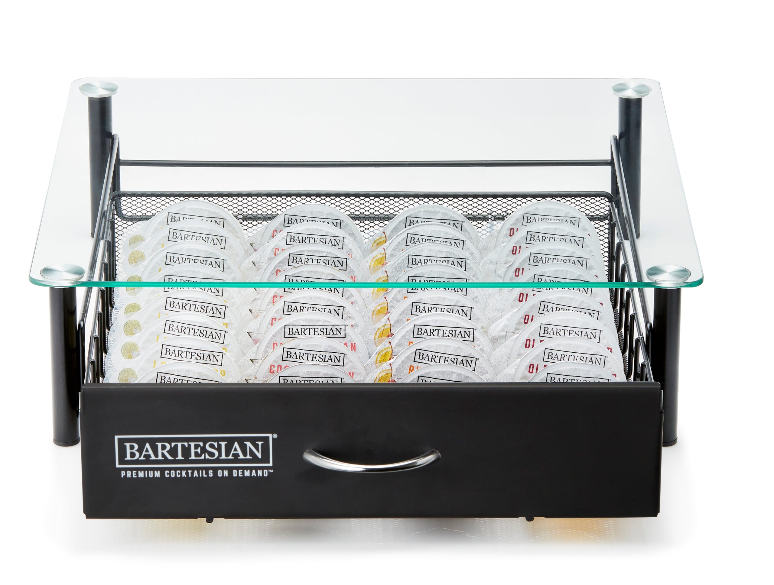 Store your cocktails in style! The Bartesian Storage Drawer is the perfect complement to your bar or kitchen counter. Designed with tempered glass and storing up to 36 individual cocktail capsules. you’ll love this sleek addition to your Bartesian experience.