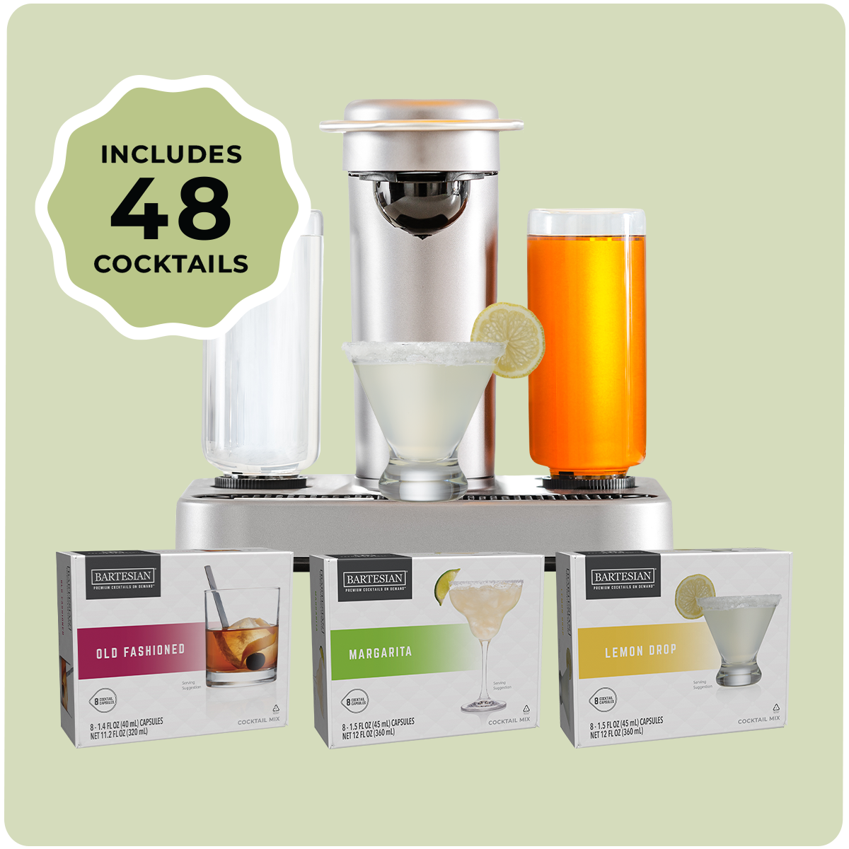 The Bartesian cocktail maker crafts bar-quality cocktails on demand with: