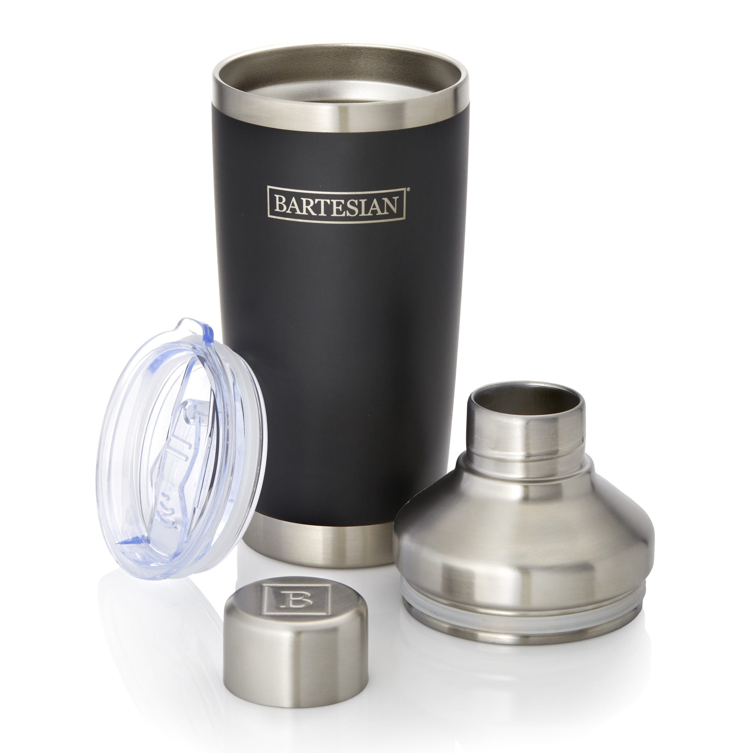 Upgrade your pour and shake your way to perfection with the Bartesian Boss Shaker. This insulated stainless steel shaker doubles as a tumbler. with an additional lid for quick enjoyment of your favorite drink on the go. Each set contains a shaker base. shaker lid. and tumbler lid. packaged in a premium gift box.